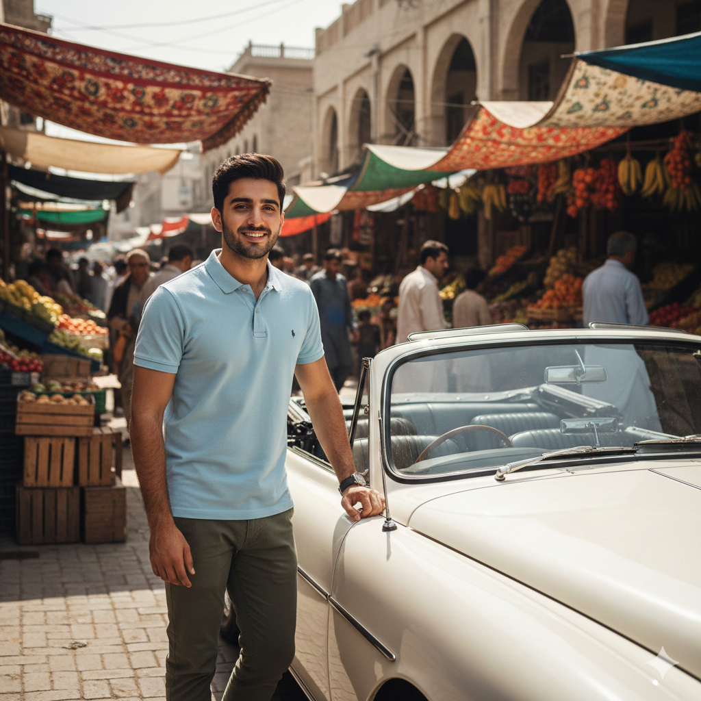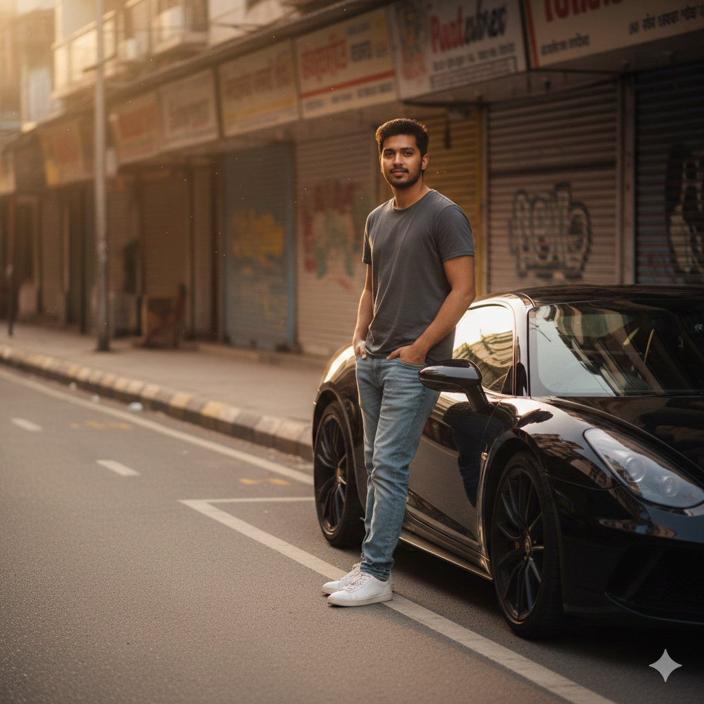 Nothing says power like leaning against expensive machinery. This prompt delivers instant status.